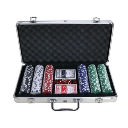 Maleta de Poker Jogo com 500 fichas em acrílico 2 baralhos e 5 dados Premium
