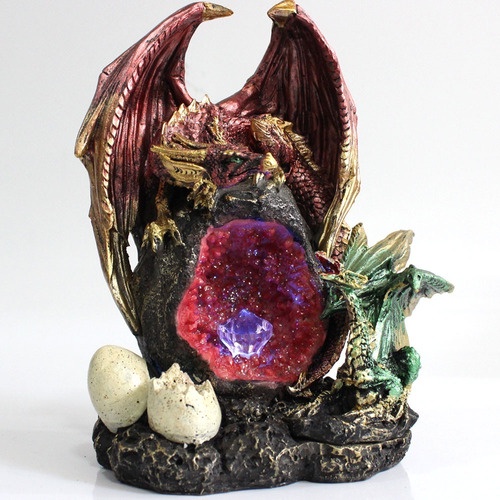 Enfeite Decorativo Em Resina Com Luz De Led Dragão 21cm