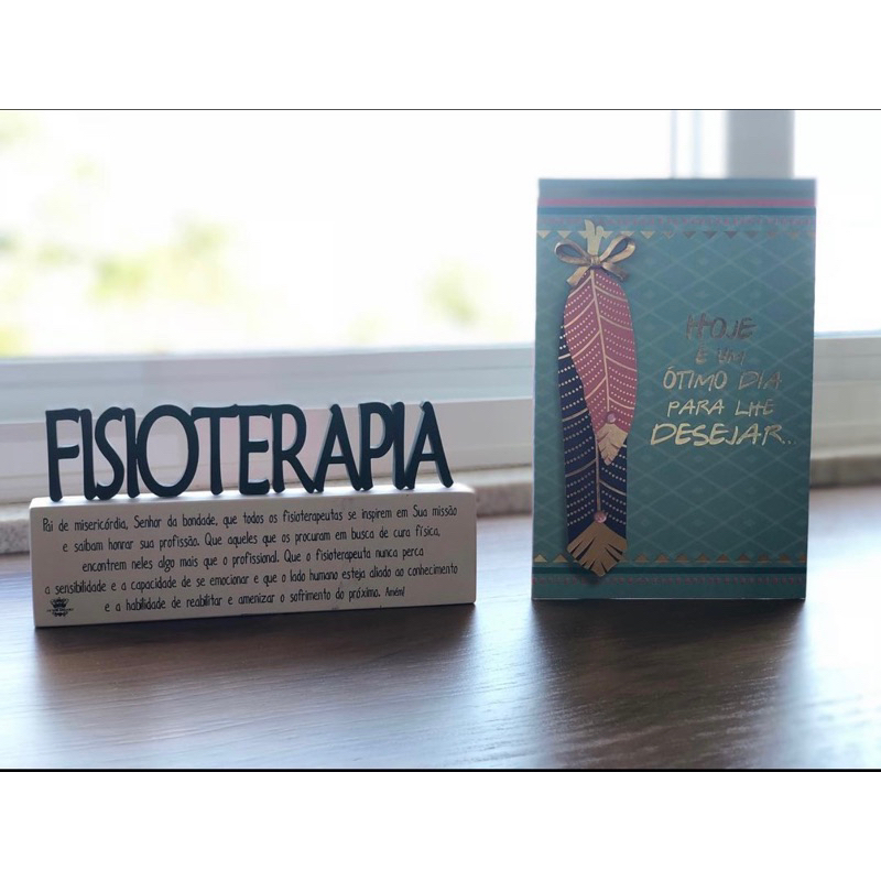 Enfeite de Decoração Formatura Plaquinha de Mesa em Madeira com Profissão e Oração Fisioterapia