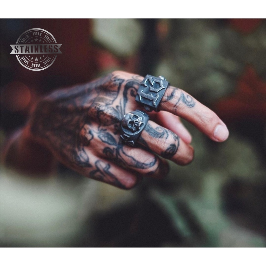 Anel Masculino Feminino Vintage Número 13 Treze Caveira Skull Acessório Retrô Moda Homem Aço Black Maciço 26g