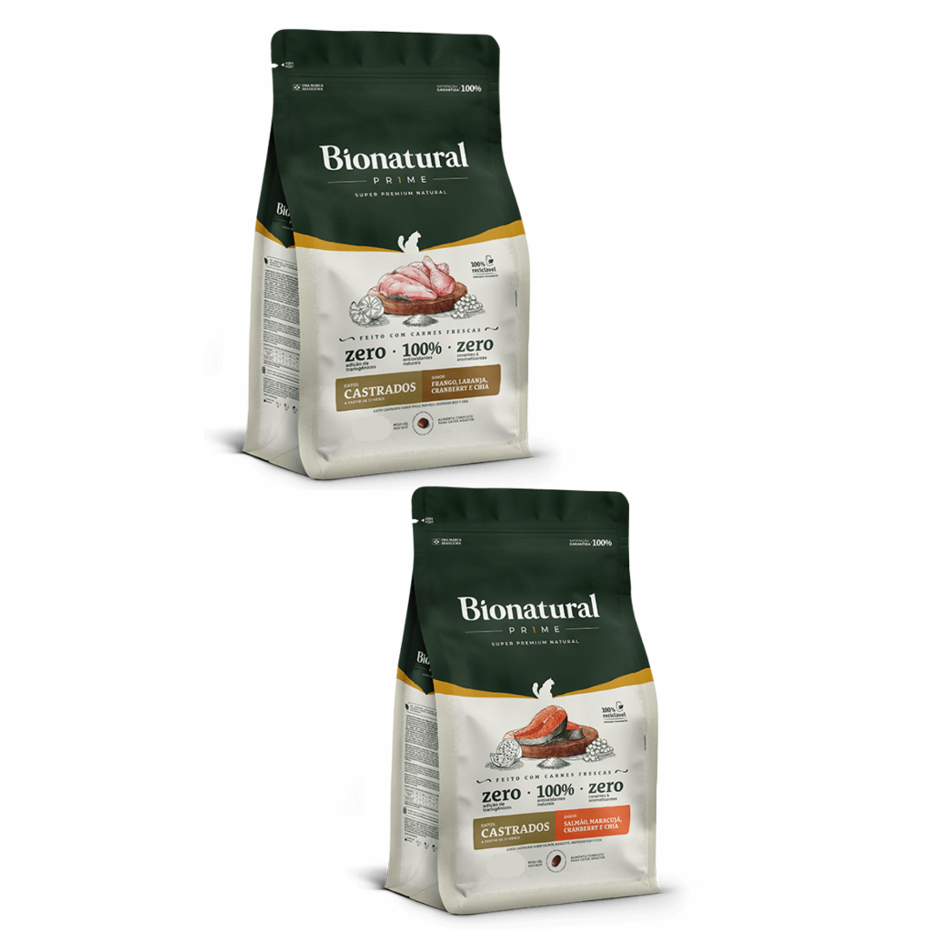 RAÇÃO BIONATURAL PRIME GATOS CASTRADOS SALMÃO OU FRANGO 7,5KG
