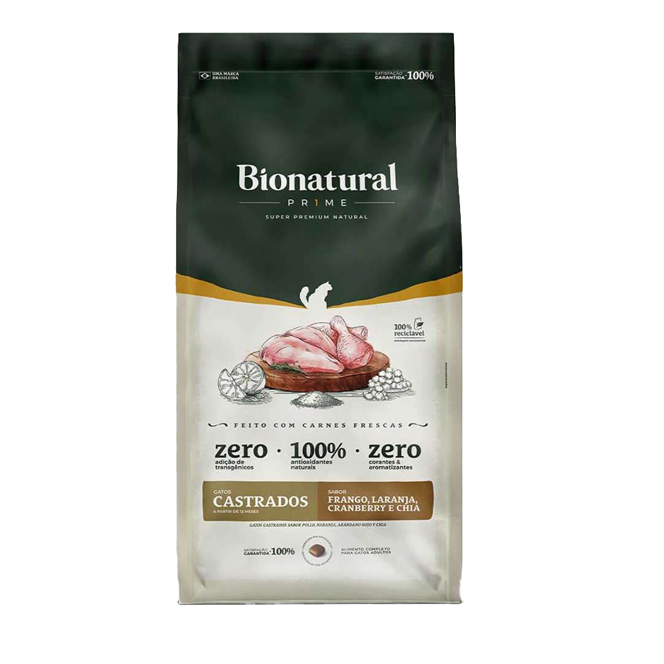 Ração Bionatural Prime Gatos Castrados sabor Frango 7,5 KG