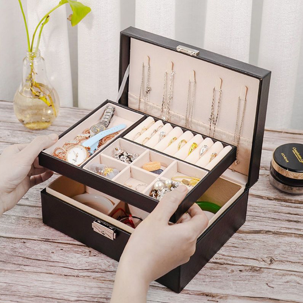 Sênior Caixa De Joias Organizador de Multilayer PU Material Esponja Expositor De Jóias Viagem Caixas Botão Armazenamento Em Couro