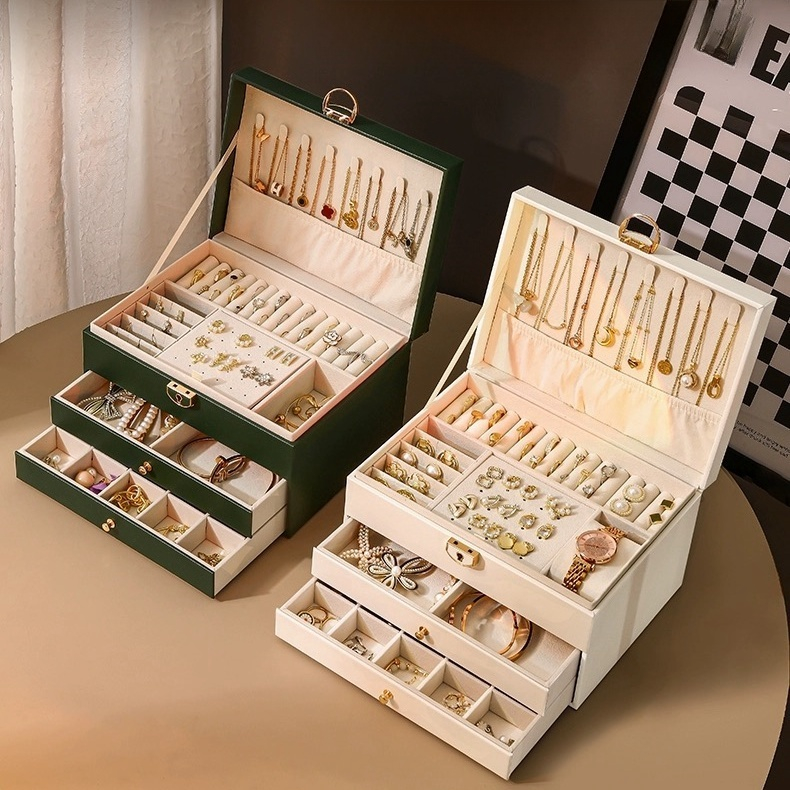 Caixa De Jóias Decorativa Acrílica Com Três Camadas Armazenamento De Gavetas Bandeja De Veludo Organizador De Caixas Para Brincos De Relógio Anéis