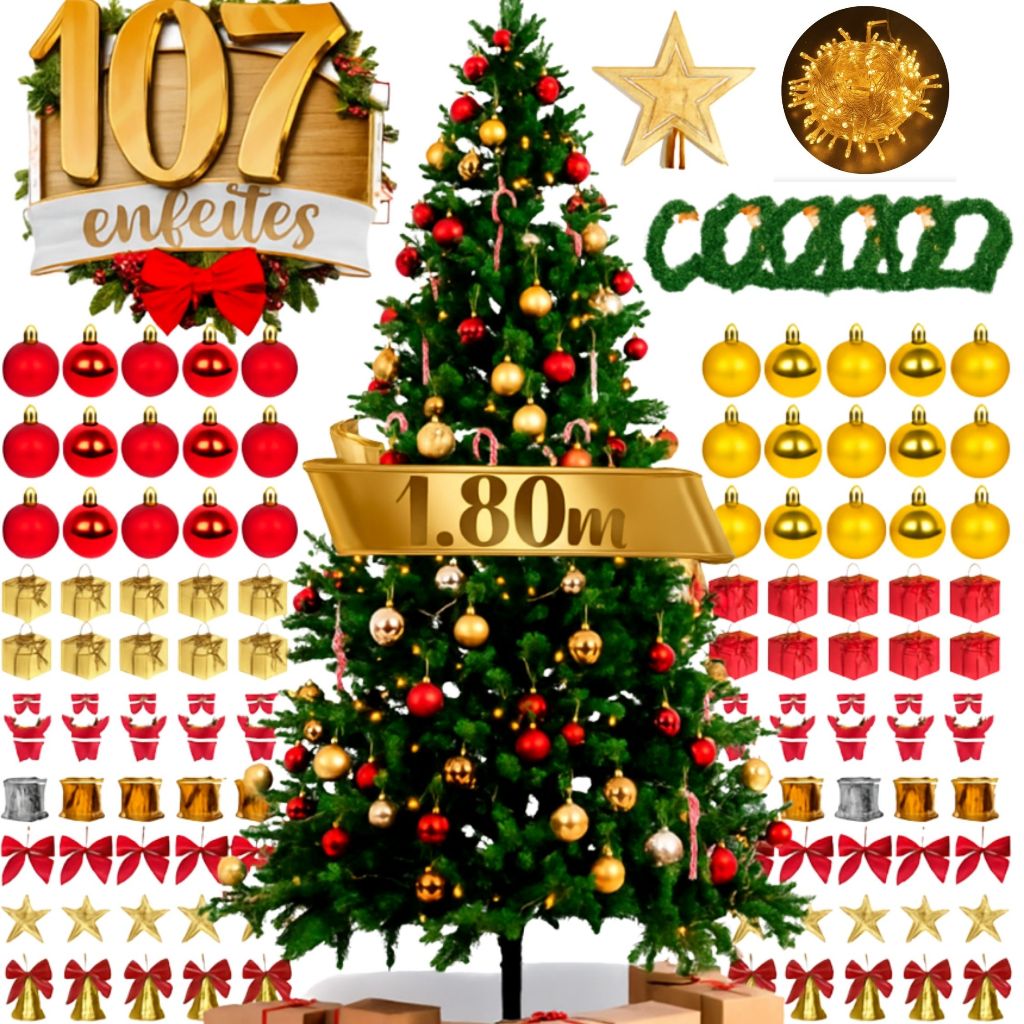 Kit Completo Árvore De Natal Decorada 120 Galhos+Enfeites+Brinde Natal 2025 Decoração tendência VD
