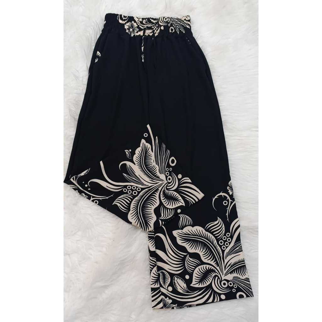 Calça Pantalona Feminino Estampado Duna Com Bolso Moda Casual