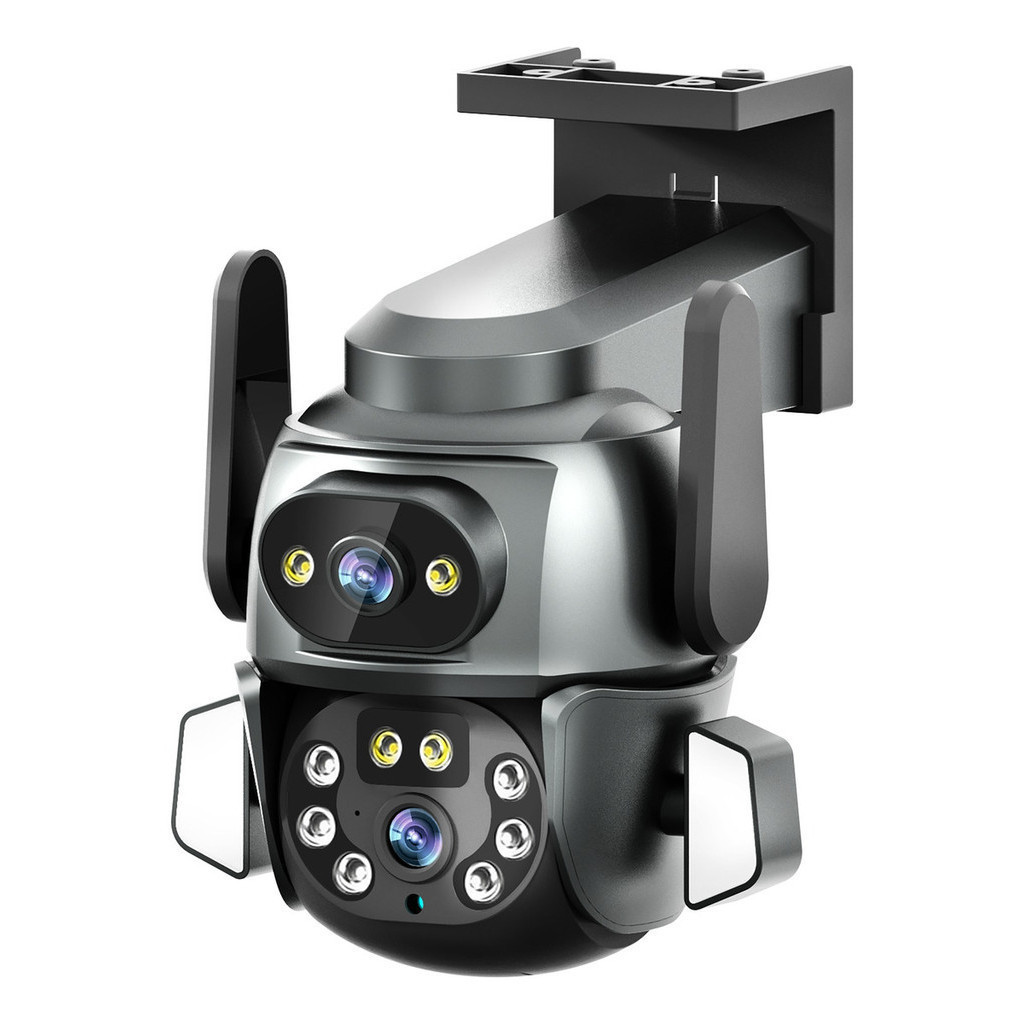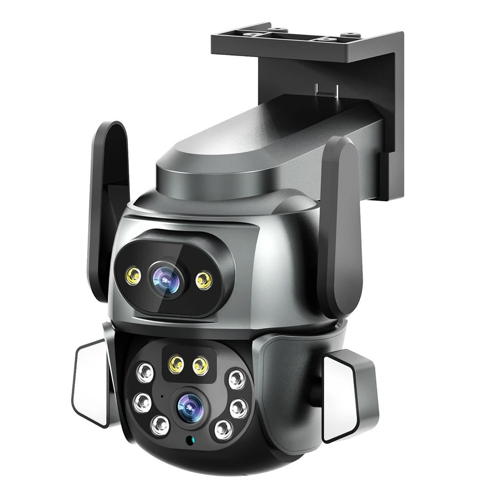Câmera IP de lente dupla ao ar livre com tela dupla, rastreamento automático, proteção de segurança, vigilância CCTV, 4K, 8MP, PTZ, WiFi, HD, ICSee