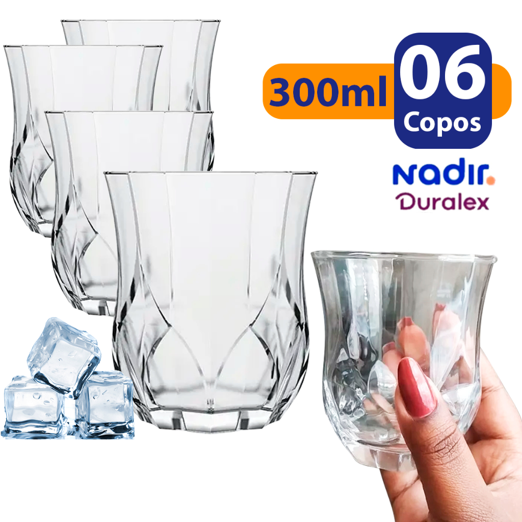 Jogo De Copos Vidro Temperado Opera Nadir 300ml Detalhado Bebidas e Drinks 6 peças Conjunto de Copos
