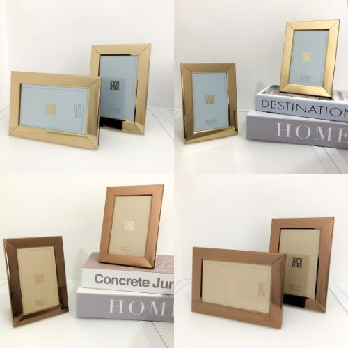 Kit 3 Porta Retratos 10x15 Moldura Metal e Vidro Luxe Decor Flexível Prata / Dourado / Preto