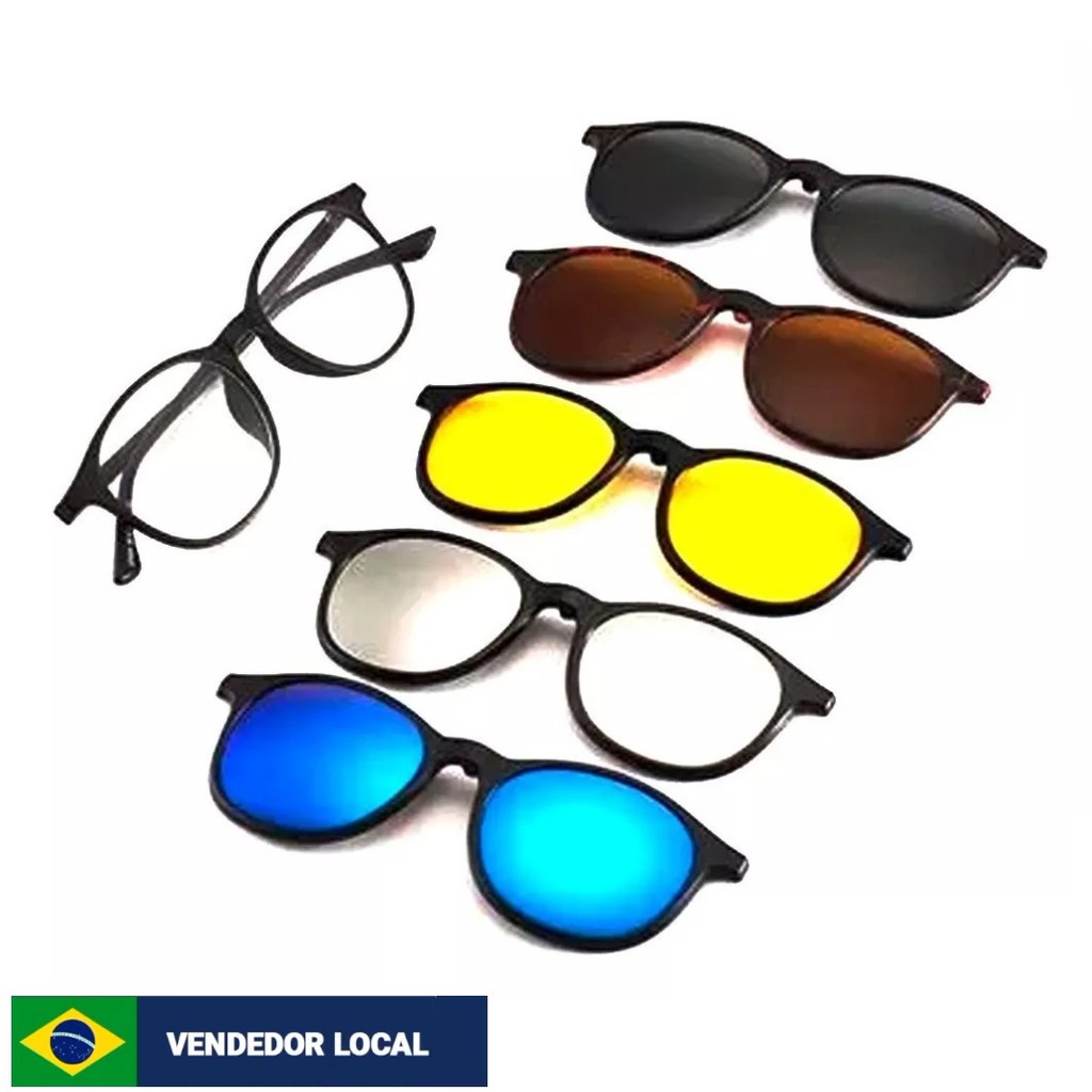 Armação Sem Grau Óculos 6 Lentes Em 1 Arredondado Clip On Polarizado Magnetico