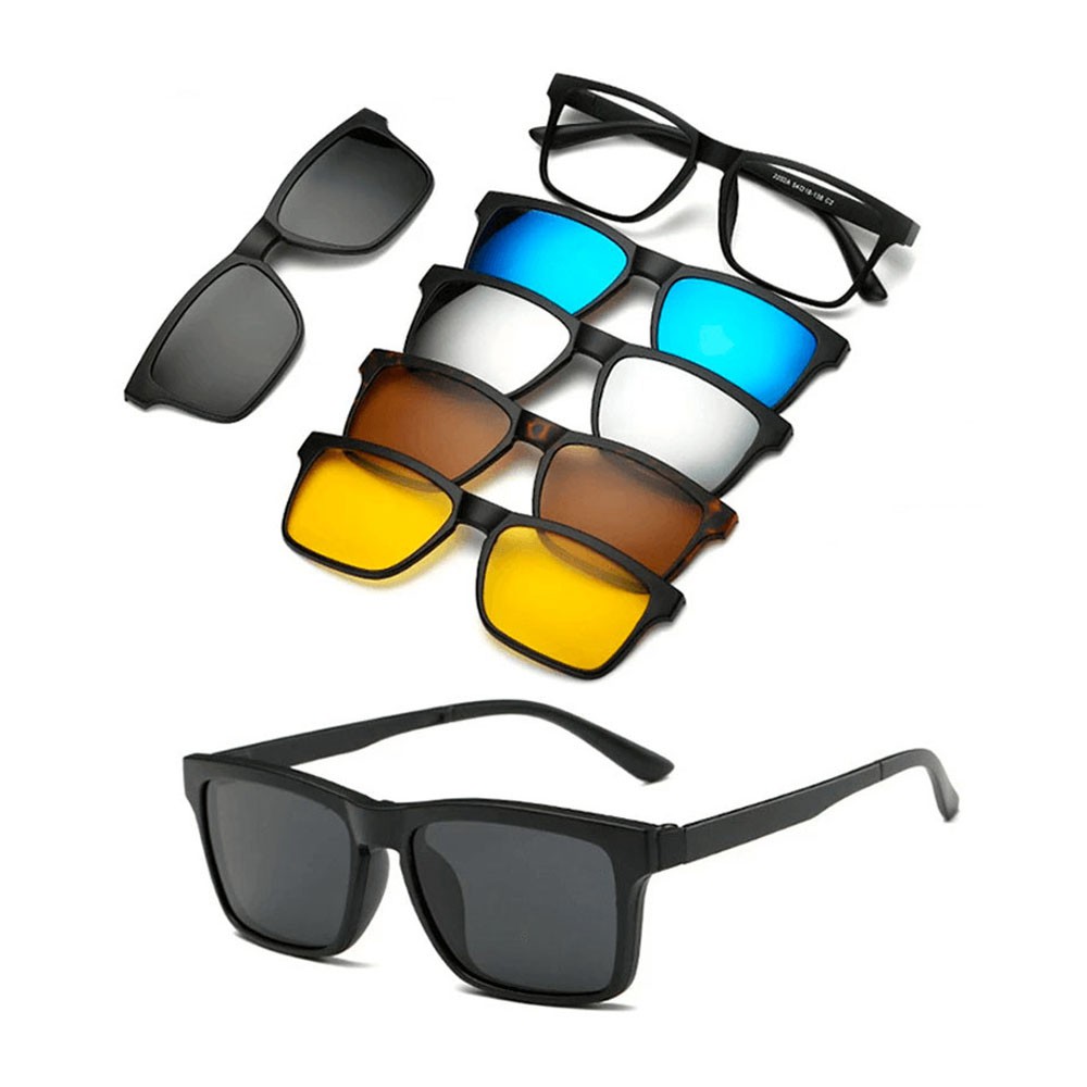 Armação Sem Grau Óculos 6 Lentes Em 1 Quadrado Clip On Polarizado Magnético Modelo 2223 Promoção