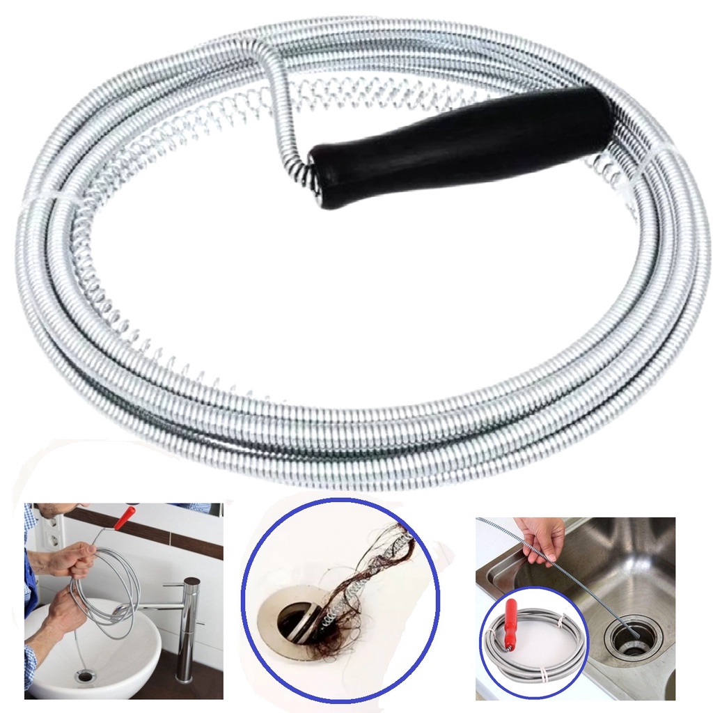 Limpador desentupidor manual doméstico de pias ralos esgotos encamentos tubulações e outros com 3 metros comprimento e 5 mm de espessura