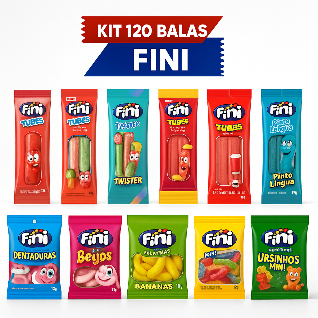 Kit com 120 Pacotes de Balas Fini - Sabores Variados e Divertidos