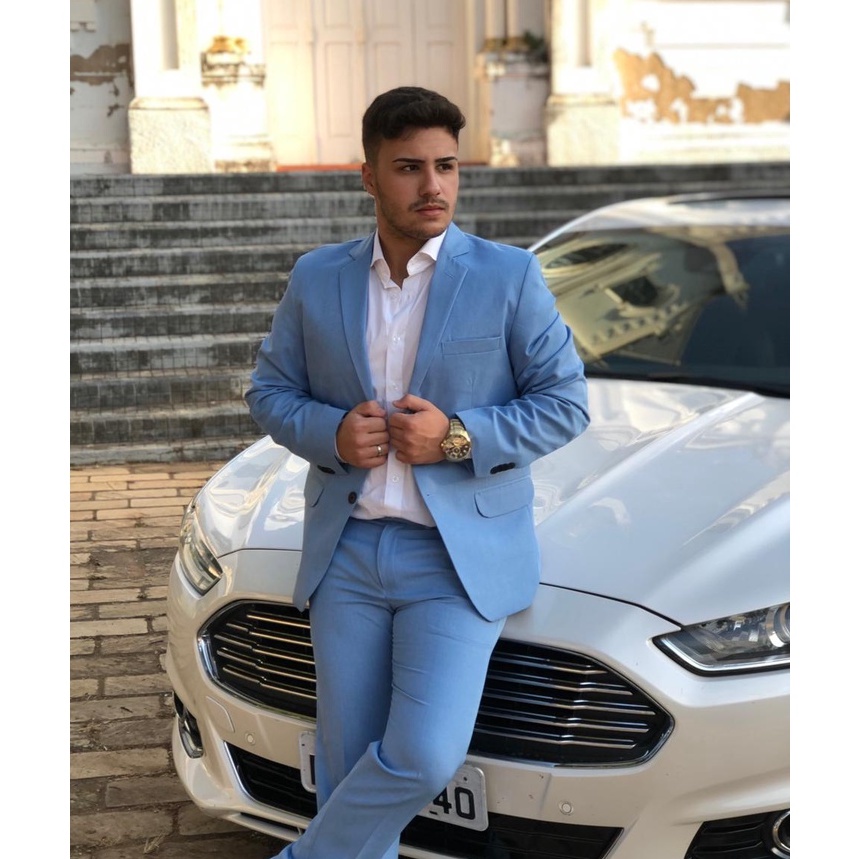 Terno Slim Microfibra -Corte de Luxo -Azul Bebê- Paletó + Calça