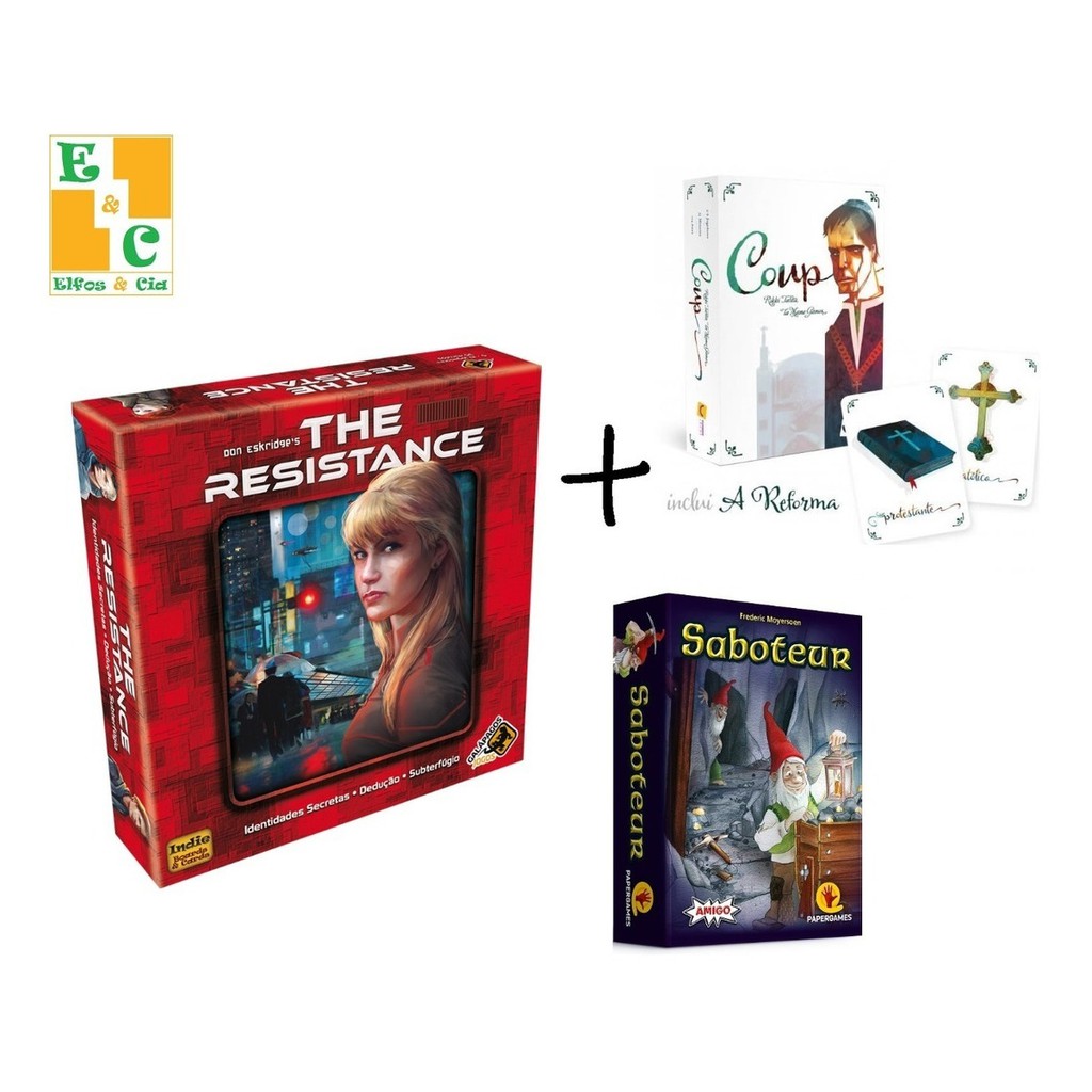 Kit Saboteur + Coup 2ªedição + The Resistance - jogos de cartas