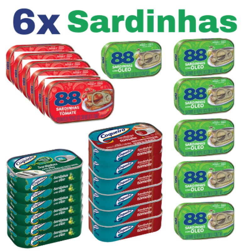 Kit 6 Sardinhas Enlatadas 88 e Coqueiro Sardinha coqueiro Sardinha 88 Sardinha Atacado