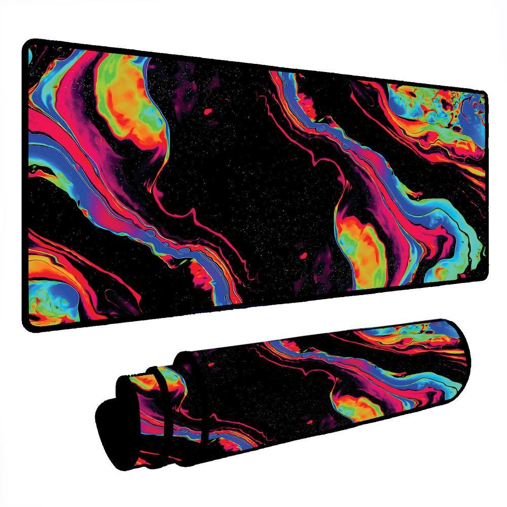 Mouse Pad Gamer Speed Extra Grande Desk Pad Profissional Premium Com Borda Costurada 120x60 - Neon Abstract Colors