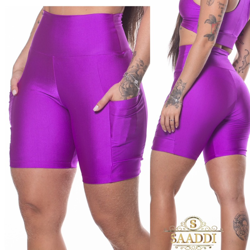 Bermuda Ciclista Com Bolso em Poliamida Brilho Gloss Academia