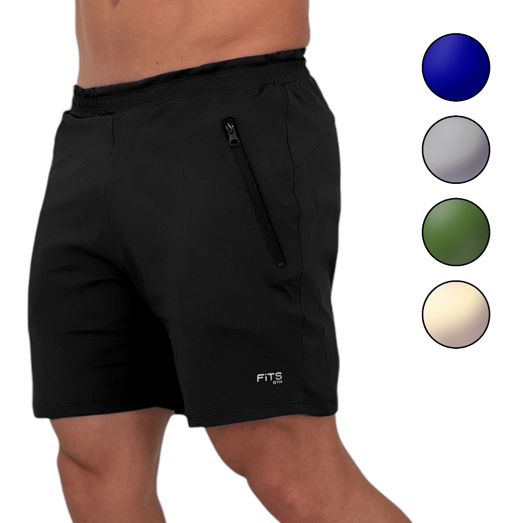 Bermuda Shorts Masculino com Bolsos com Zíper para Academia em Poliamida Moda Fitness Curta