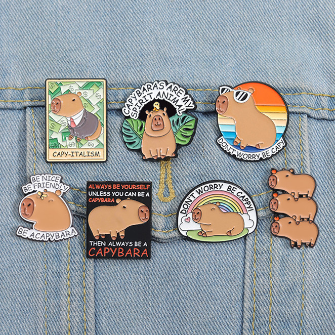 Bonito Desenho Animado Em Forma De Capybara Broche De Metal Animal Crachá Lapela Pin Jóias Acessórios Gift
