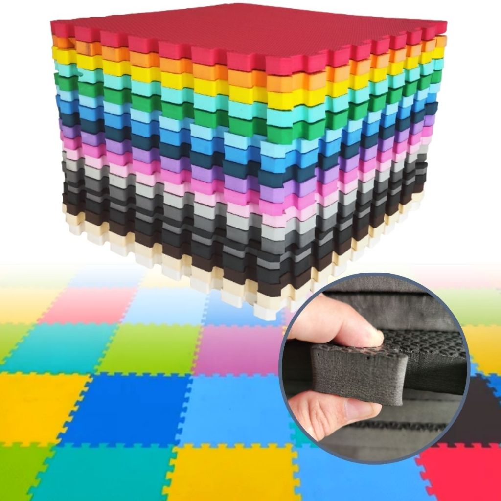 Kit 12 Tapete para Bebe Piso EVA Infantil Grosso 20mm Tapete Yoga Emborrachado 50x50 Tatame Colorido com 3m² + 20 Bordas