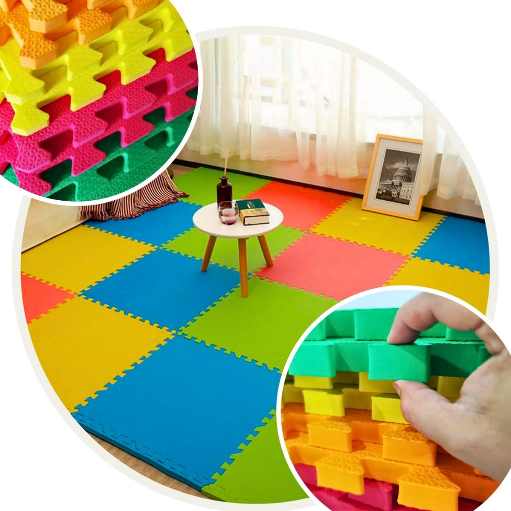Kit Tatame Eva Infantil com Encaixe 10 placas Tapete Eva Colorido 50x50x1cm Peq Defeitos para Crianças e Pets