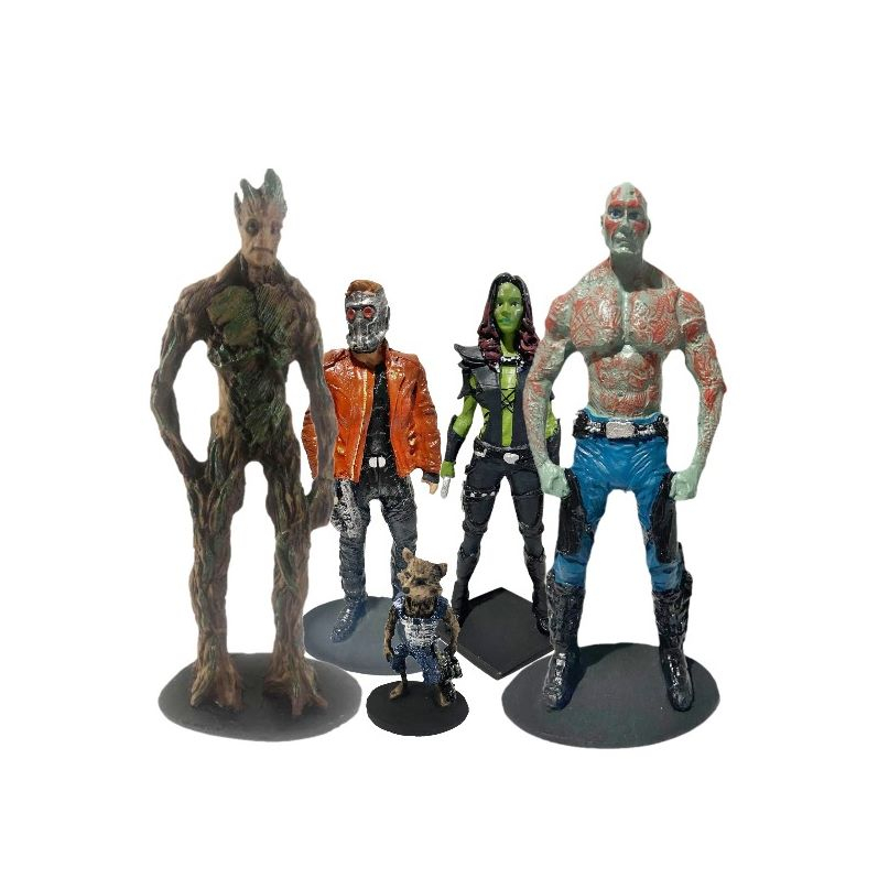 Kit com 5 Estatuetas Guardião da Galáxias em Resina Os Vingadores - Groot Adulto, Senhor das Estrelas, Rocket, Gamora e Drax