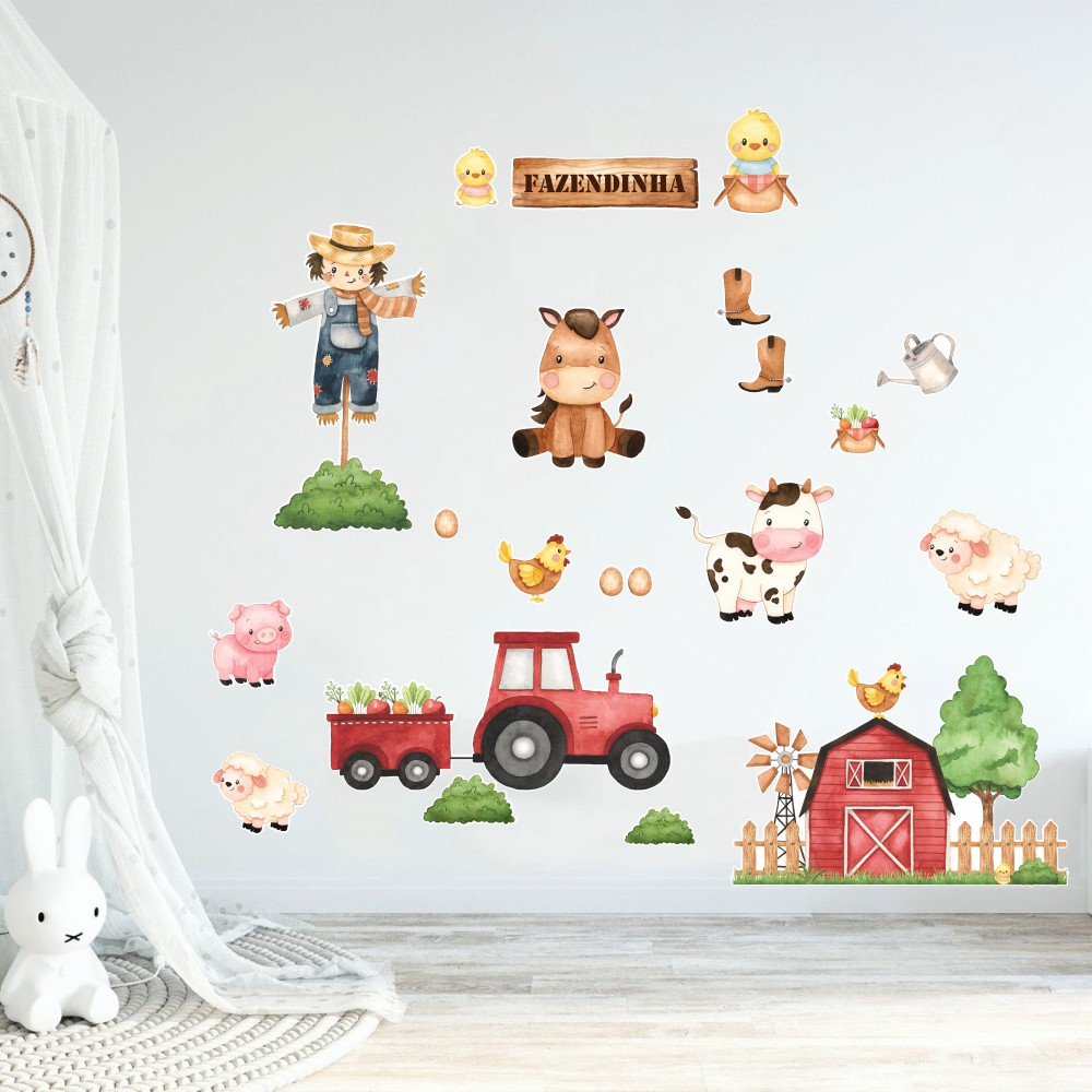 Adesivos de Parede Fazendinha, Celeiro, Trator, animais