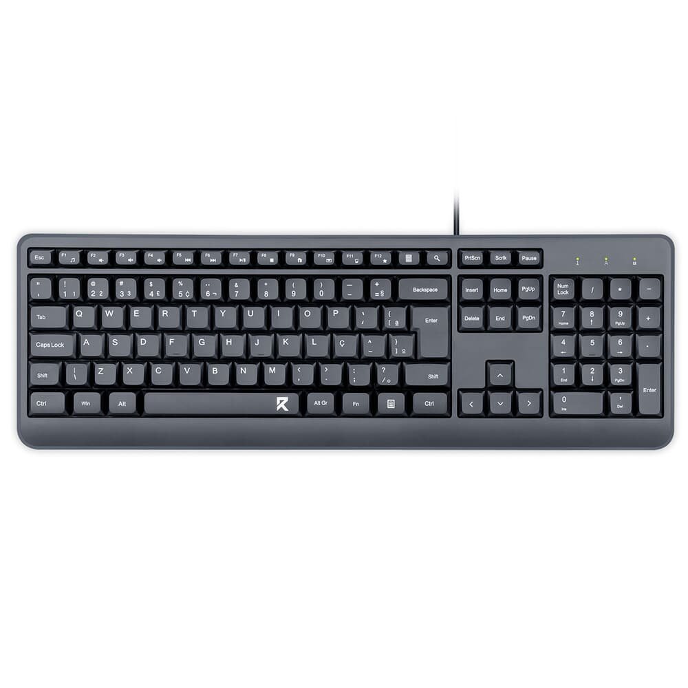 Teclado Membrana R8 1801, ABNT2, Preto, R8-1801-BK