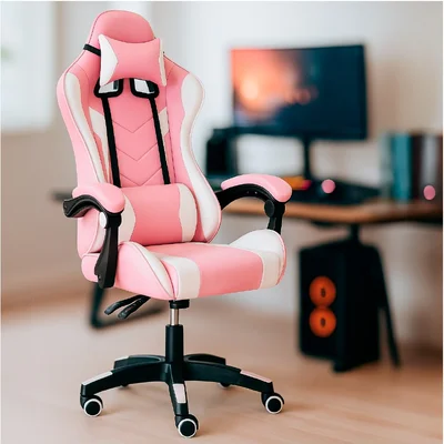 Cadeira Gamer Setup Profissional Escritório Ergonômica Gamers Reclinável Base giratória Apoio Lombar Resistente Home Office C7 Neo Comfort - Rosa e Branco