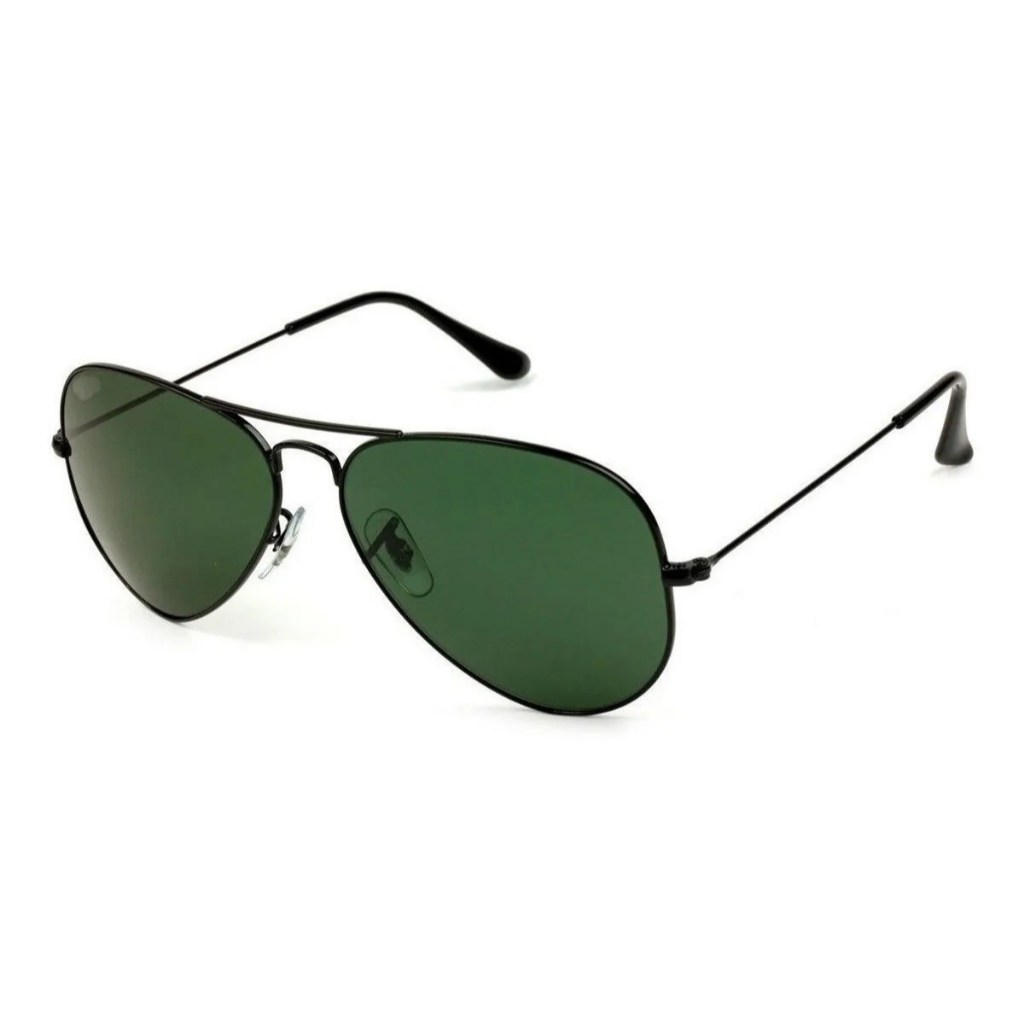 Óculos de Sol Aviador Preto Verde G15 Metal Lentes Cristal Proteção Uv