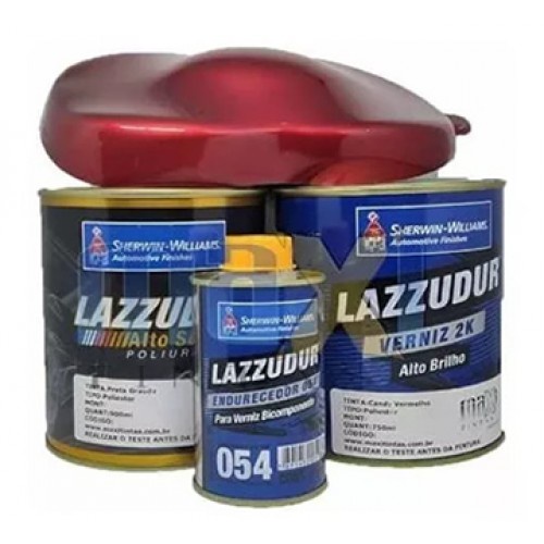 Tinta Automotiva Candy Vermelho 900ml + Base Aluminio Graudo 900ml Lazzuril