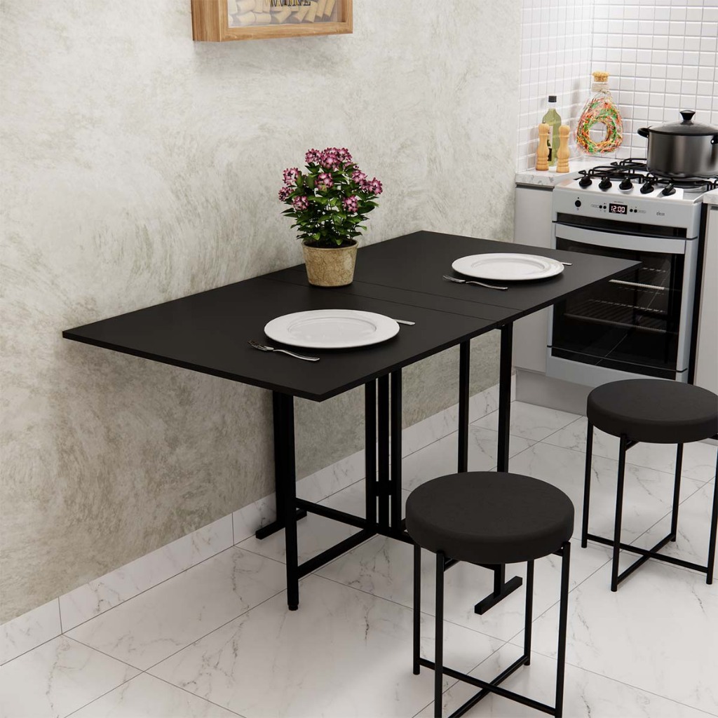 Mesa Articulada Dobrável 6 Lugares Multiuso Preta Compacta em MDP Mesa De Jantar Dobrável Industrial