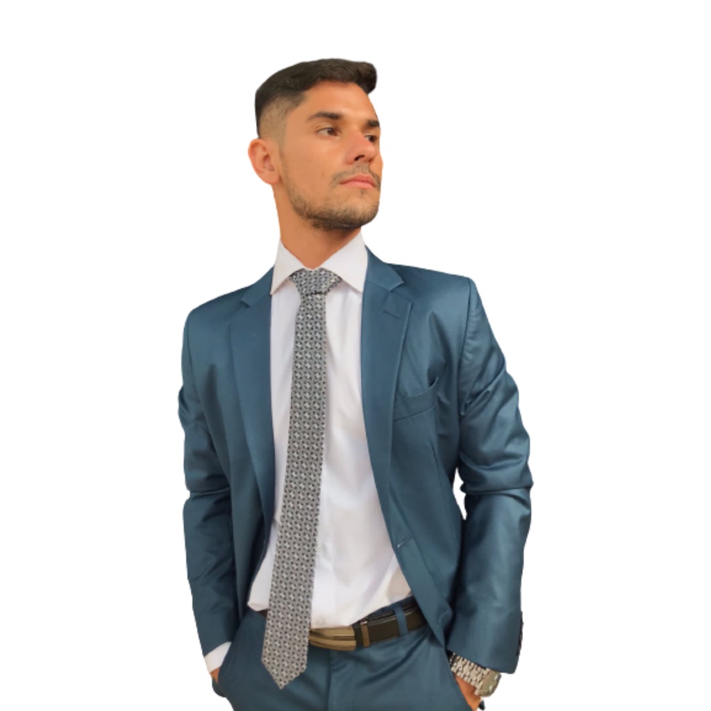 Terno Masculino Slim Azul Turquesa Textura Gabardine Lapela de Bico Linha Premium