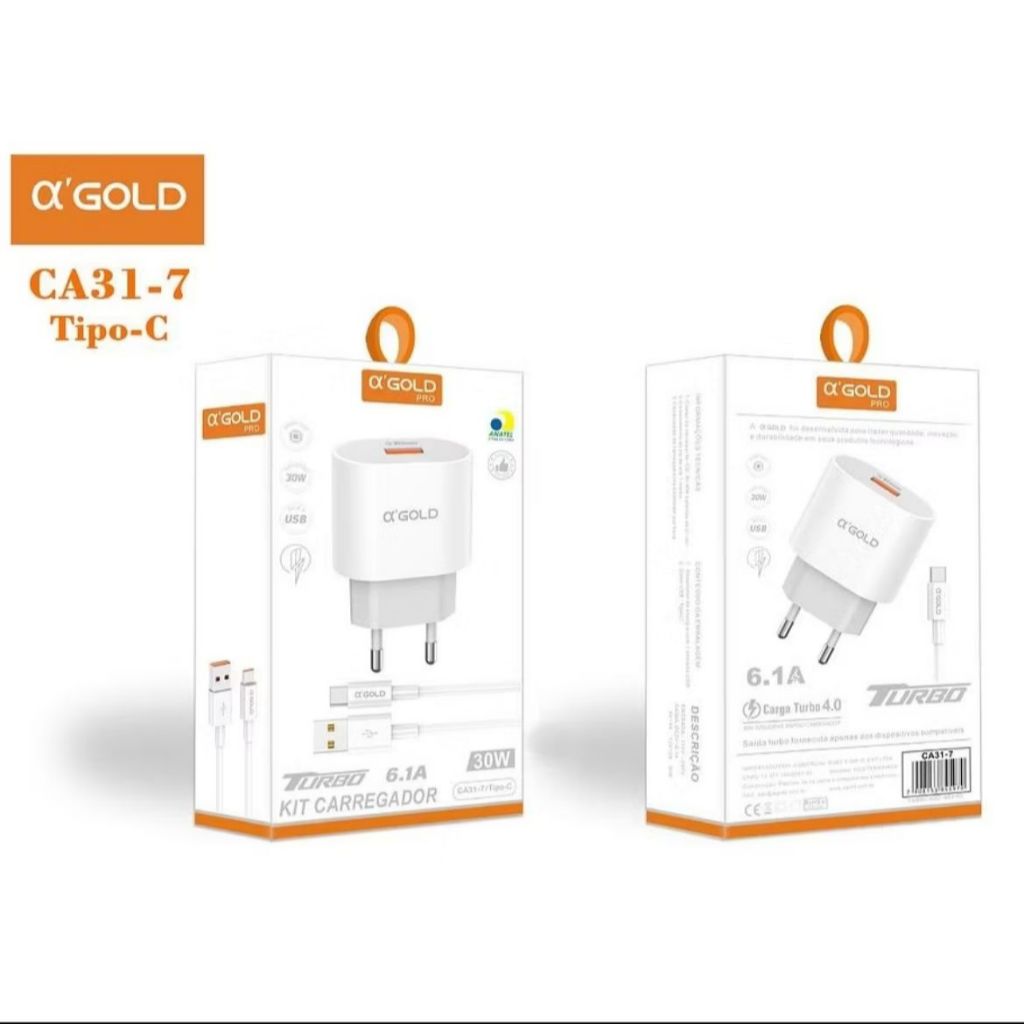 kit carregador fonte A'GOLD iphone Tipo c V8 1-usb 30W Turbo