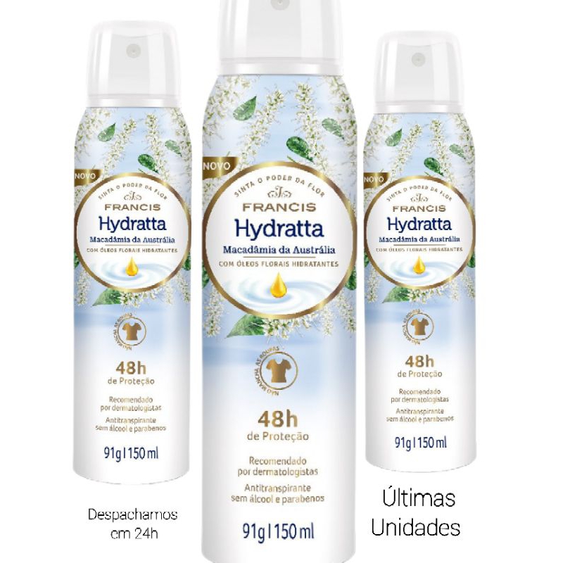 Desodorante Francis Hydrata Macadâmia da Austrália Aerossol 150ml Kit com 3 Unidades