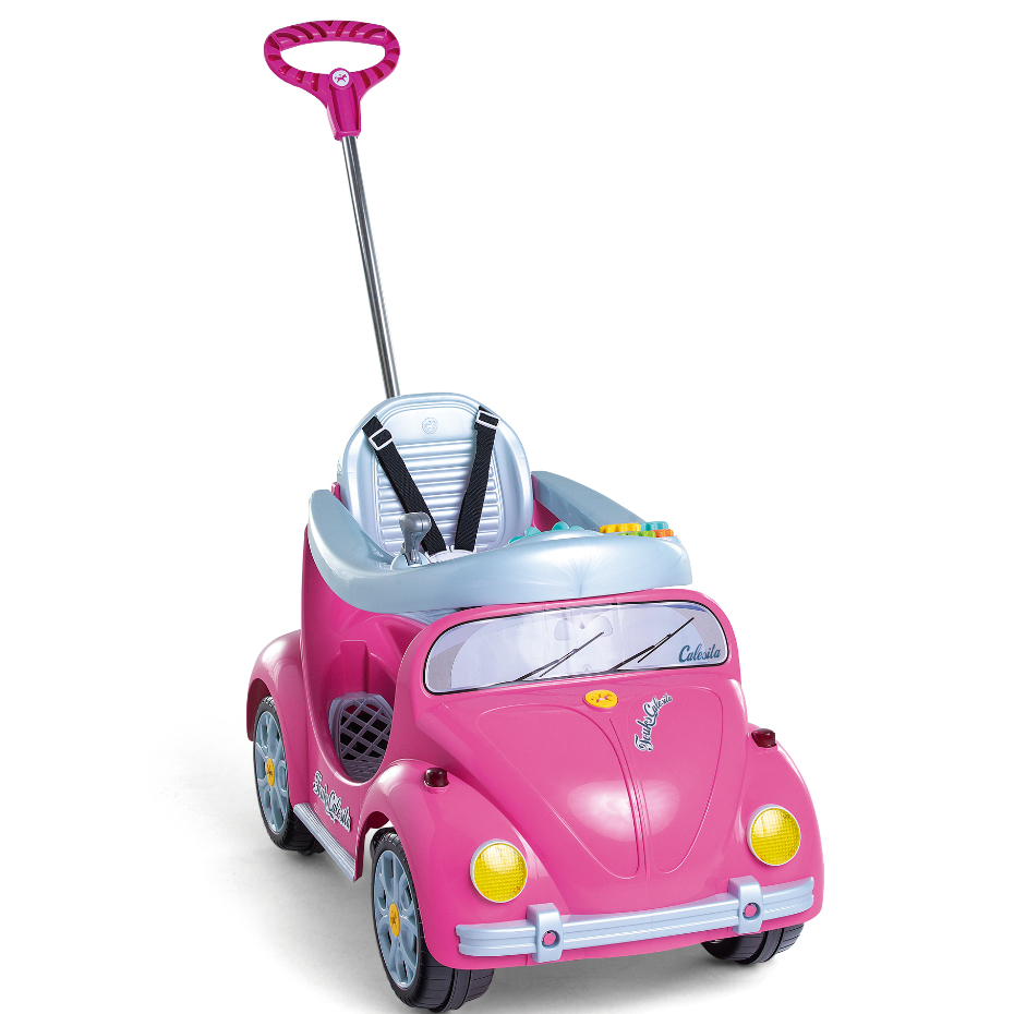 Carrinho de Passei Infantil Quadriciclo Motoca Fusca com Pedal e Haste para Empurrar Fouks Calesita
