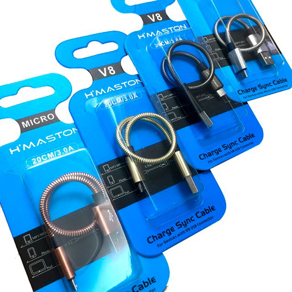 KIT 3 Cabo Micro Usb V8 Tipo-C IP Curto Pequeno 20 Cm Turbo 3a Reforçado