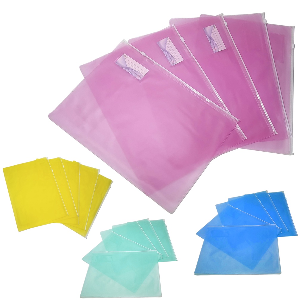 Kit 5 Pasta Organizadora de Documentos A4 Plástico PVC com Ziper Material Escolar Saco Maternidade