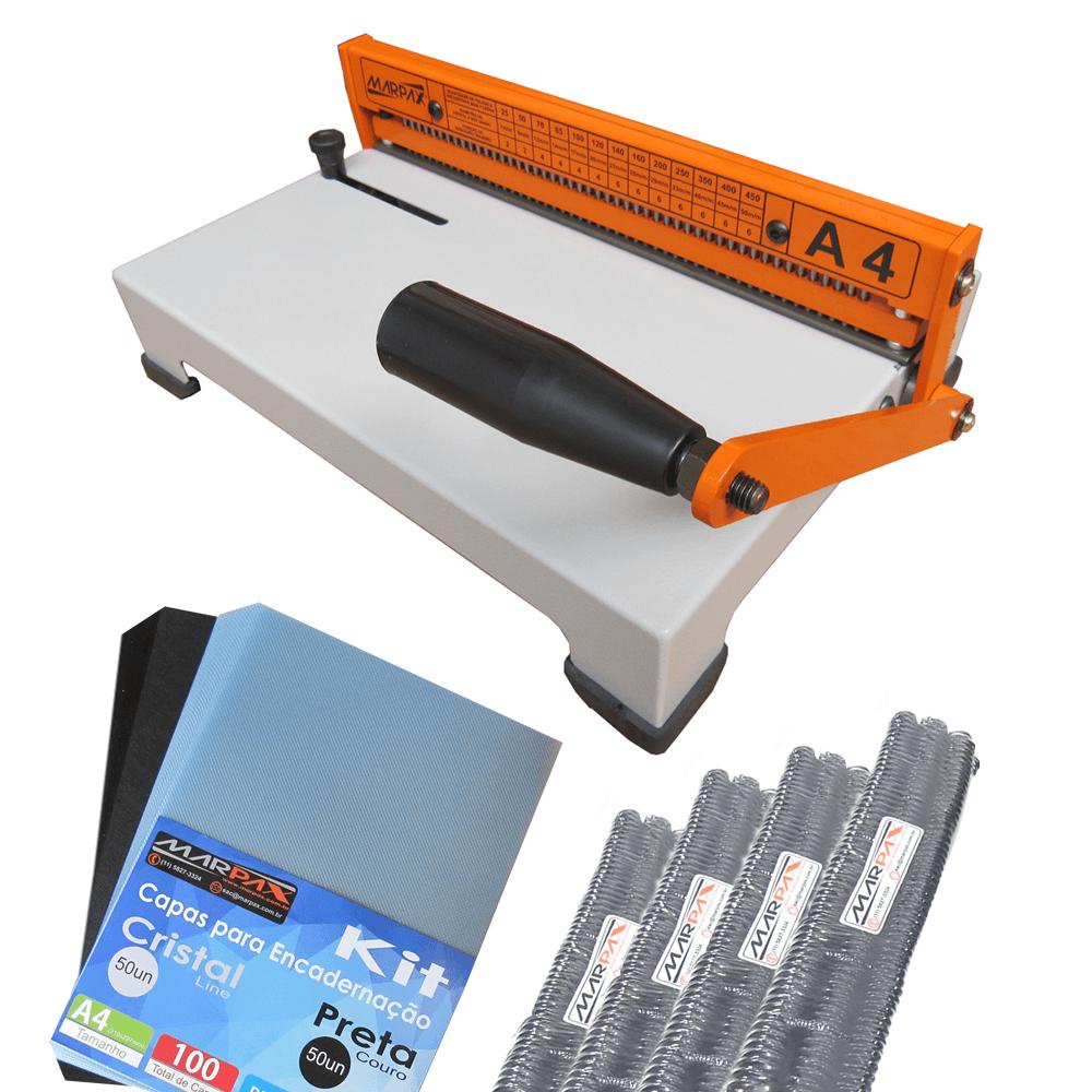 Kit Encadernação Encadernadora Espiral A4-X Marpax + 100 Capas + 100 Espirais