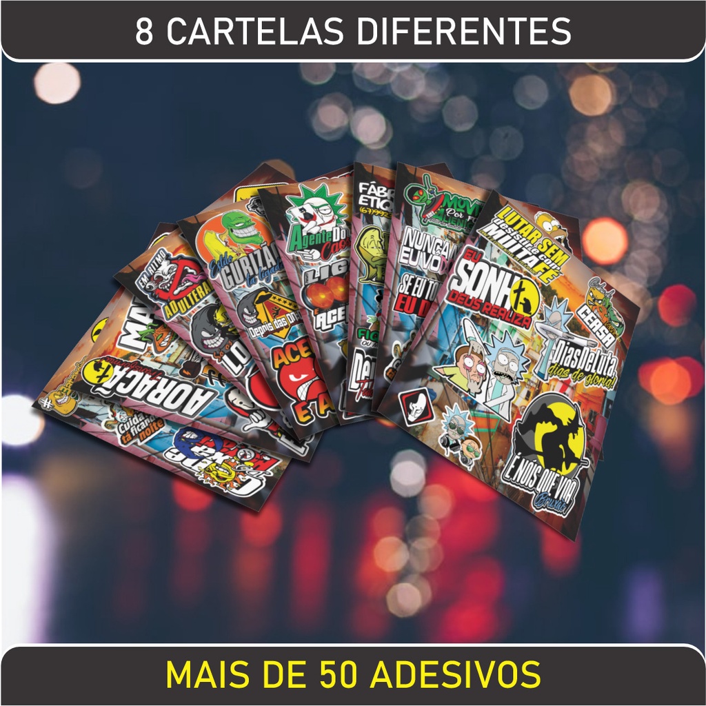 Kit 190 Adesivos 8 Cartelas variados Bike moto bicicleta carro capacete