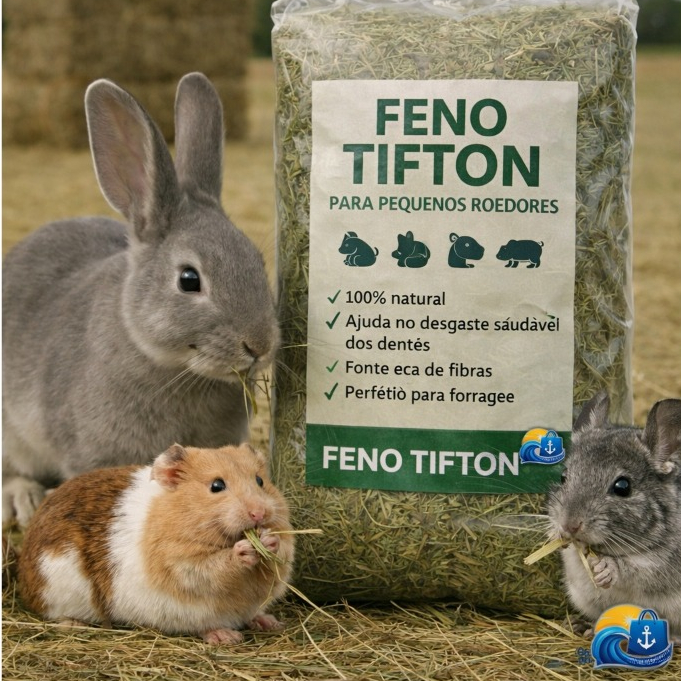 2kg Feno Tifiton Super Premium Coelhos Porquinho da Índia Hamsters Gerbil entre outros Roedores