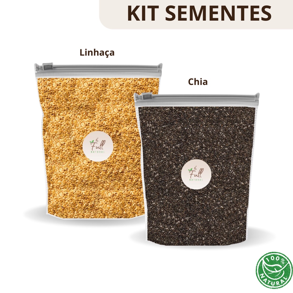 Kit sementes com omega 3 500g- chia e semente de linhaça dourada