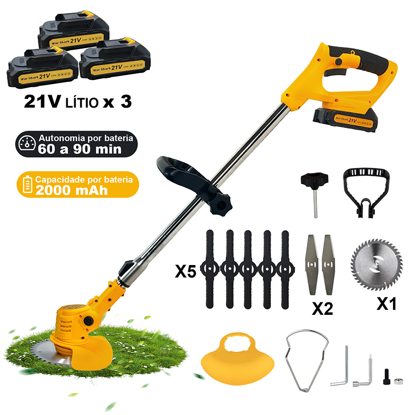 War Shark Roçadeira Aparador De Gramas Profissional 2000mah Baterias*3 18000RPM 110-220V