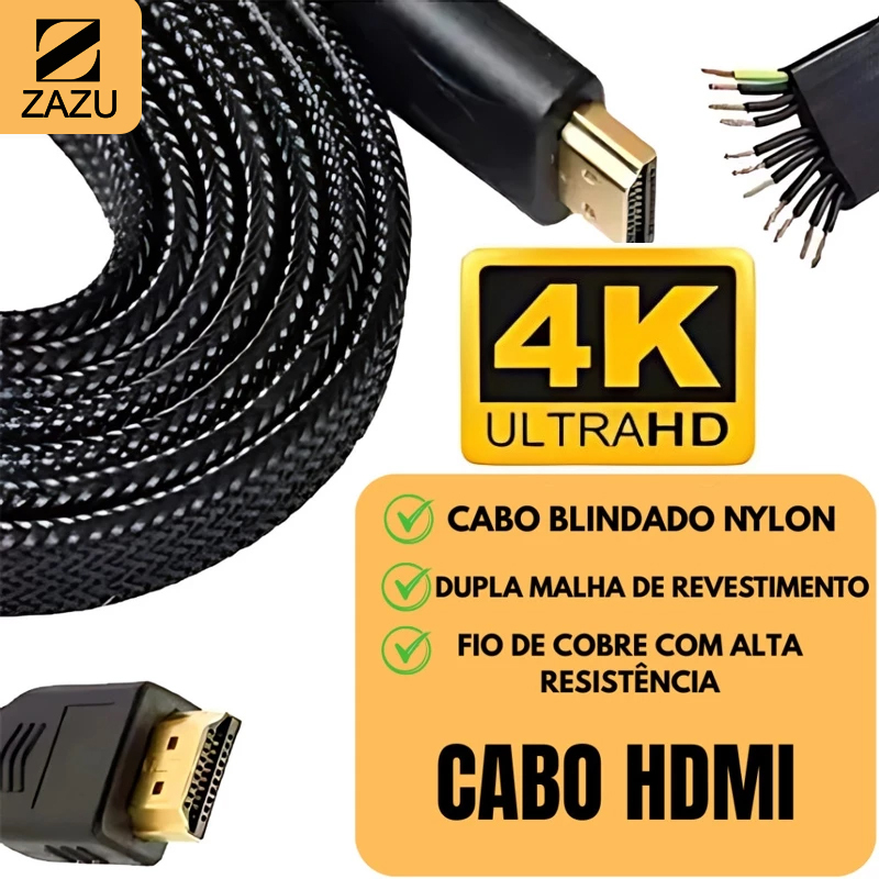 Cabo Hdmi 5 Metros 4k Ultra Hd 3D Blindado Com Revestimento Interno E Nylon Externo para Proteção