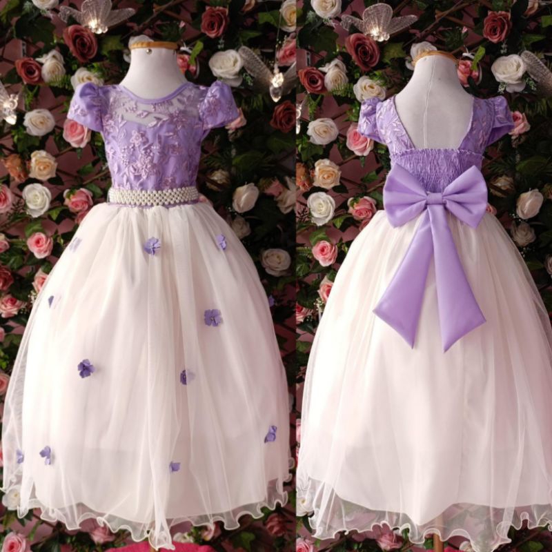 VESTIDO DE FESTA INFANTIL LONGO LAVANDA OFF WHITE