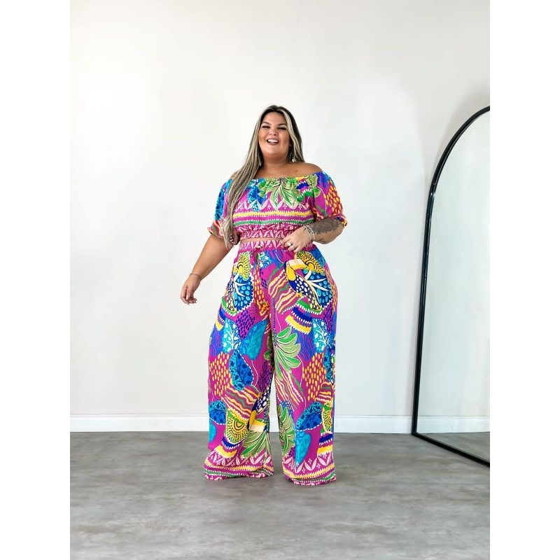 Conjunto Feminino Calça Pantalona e cropped Plus size