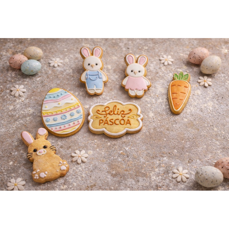 Kit Cortador Marcador Páscoa de Biscoito Bolacha Confeiteira Cookie Pasta Festa Decoração