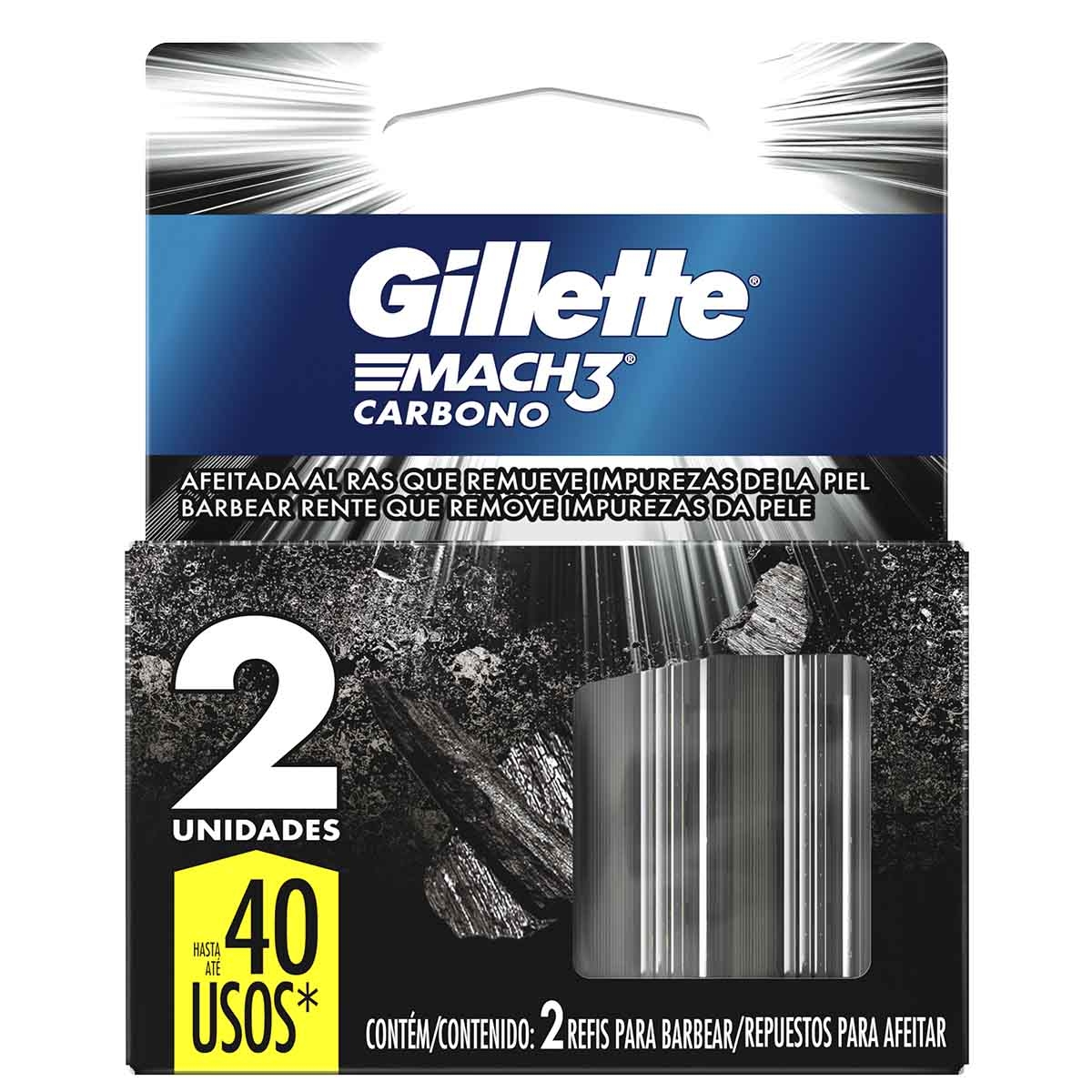Refil para Aparelho de Barbear Gillette Mach3 Carbono 2 cargas