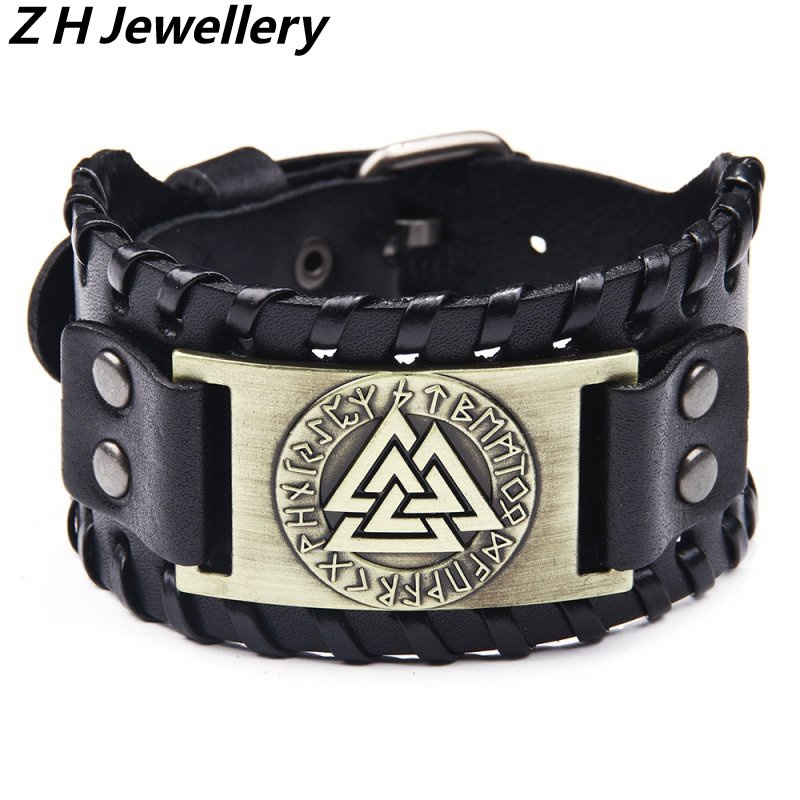 [Z H Bijuteria] Hip Hop Rock Retro Moda Masculina Viking Amuleto Couro Bracelete Festa Joias Acessórios